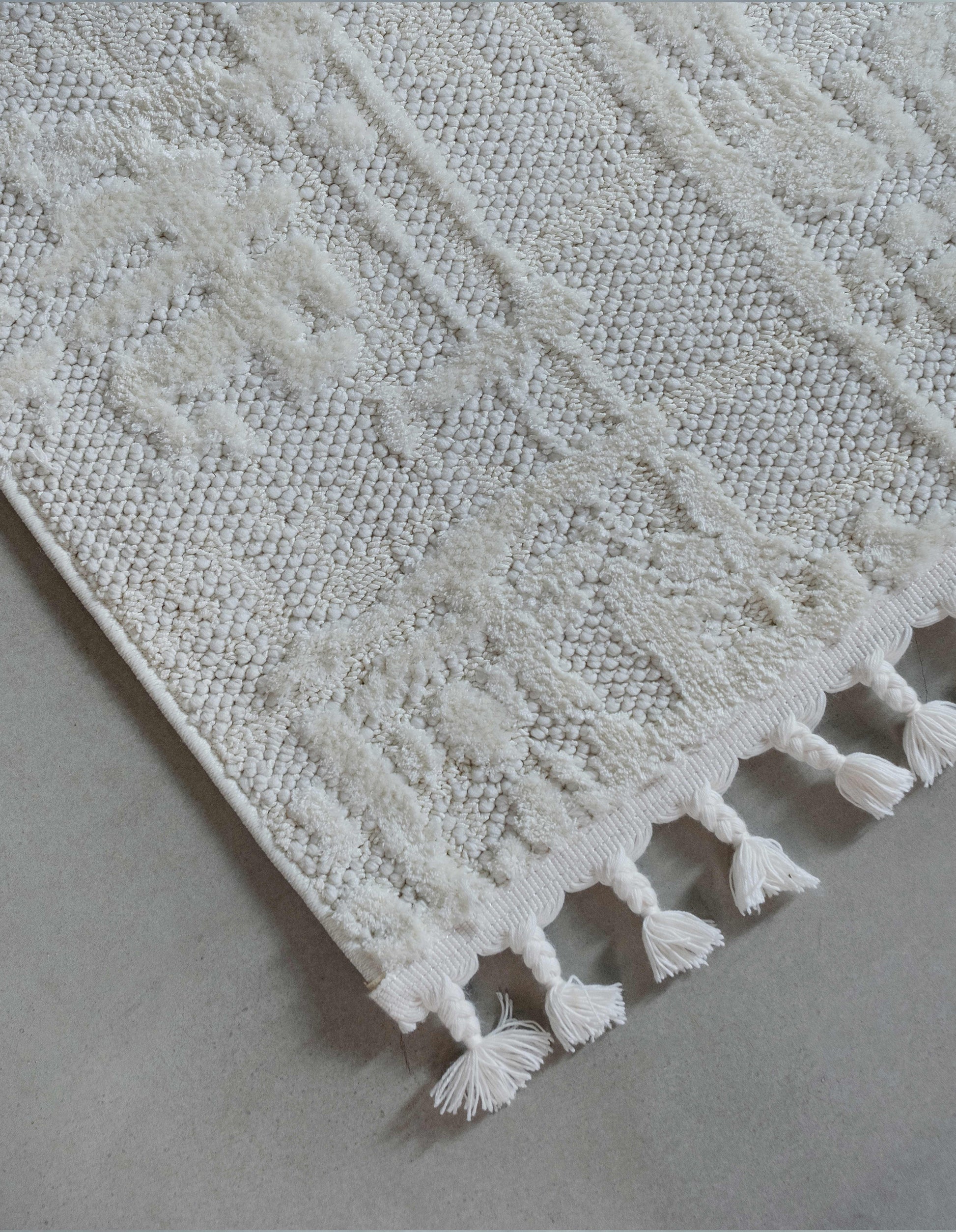 Doğal elyaf ve pamuk atkı kullanımı nedeniyle %3 oranında çekme yaşanabilir. Tekstil ürünlerinde ipliklerin boyanmasından kaynaklanan hafif renk ton farklılıkları normaldir ve her ürünü benzersiz kılar. Bu özelliklerle, uzun ömürlü ve konforlu bir deneyim sunan ürünümüz, yaşam alanlarınıza zarafet katacak.