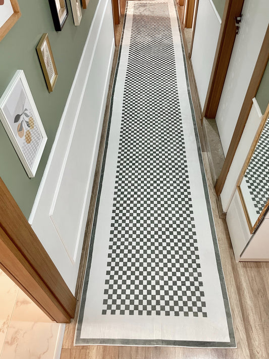 Carpetde Makinede yıkanabilir Louper Serisi Koyu Yeşil Dama Modern Desen