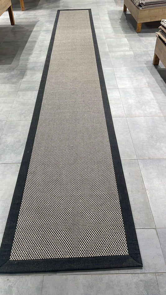 Özel Sisal Dokuma Krem Siyah Oturma odası Mutfak Koridor Halısı - Bordür Siyah