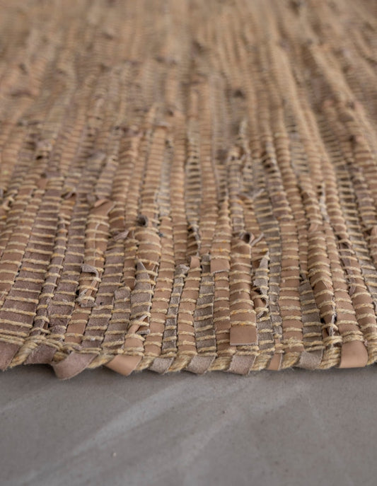 Carpetde Özel El Dokuma Deri Kilim Krem