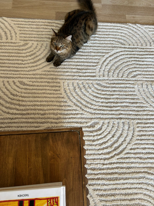 Porte El emeği dinamik bukle dokulu %100 doğal yün halı - Bej
