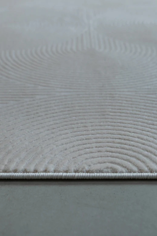 Random Yumuşak Sık Bukle Çizgi Desenli Krem Halı