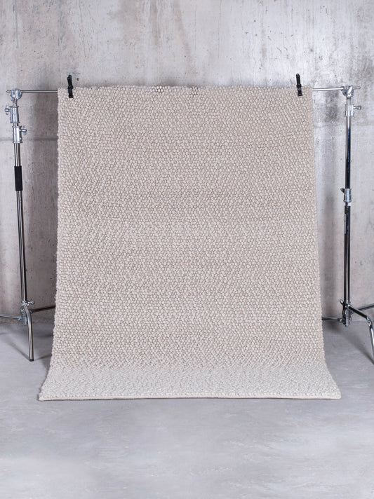 Porte El emeği dinamik bukle dokulu %100 doğal yün halı - Krem